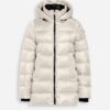 Abrigo mujer boxy puffer es la chaqueta imprescindible para este invierno. El relleno de plumón ligero de longitud media y la capucha grande proporcionan la máxima comodidad de uso.
