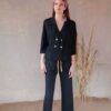Blazer cruzada de mujer con estilo fluido y manga 3/4 ideal para combinar con sus pantalones a juego.