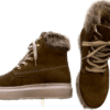 Botín de mujer en serraje verde militar con el interior forrado para aportar un extra de comodidad y calor en la temporada de invierno. Además tiene el detalle del pelo rodeando el tobillo.