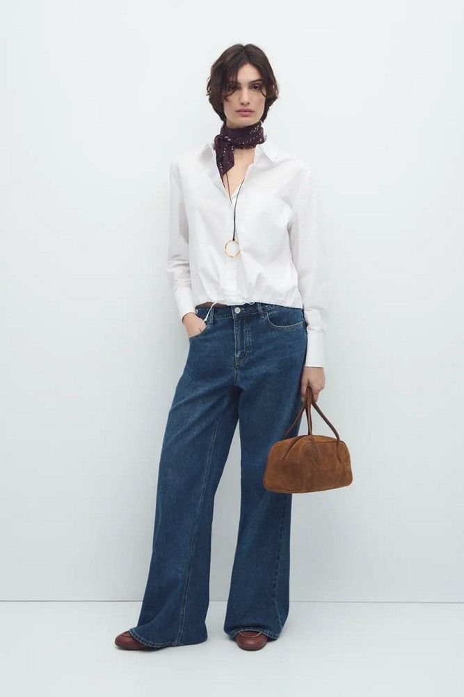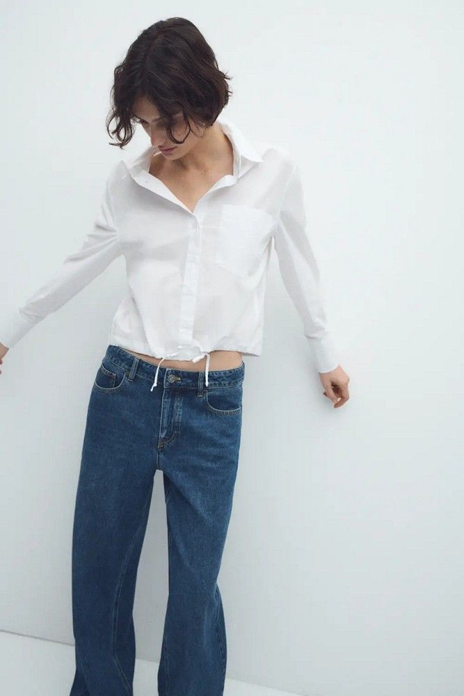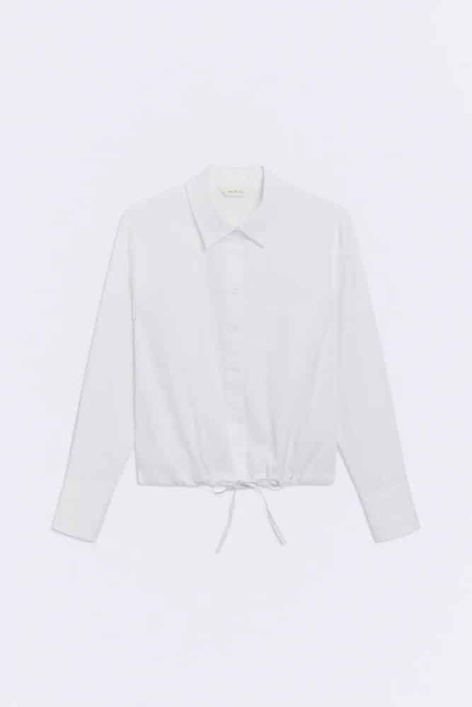 Camisa cropped hecha de 100% algodón BCI y efecto fruncido con cordón en el bajo.