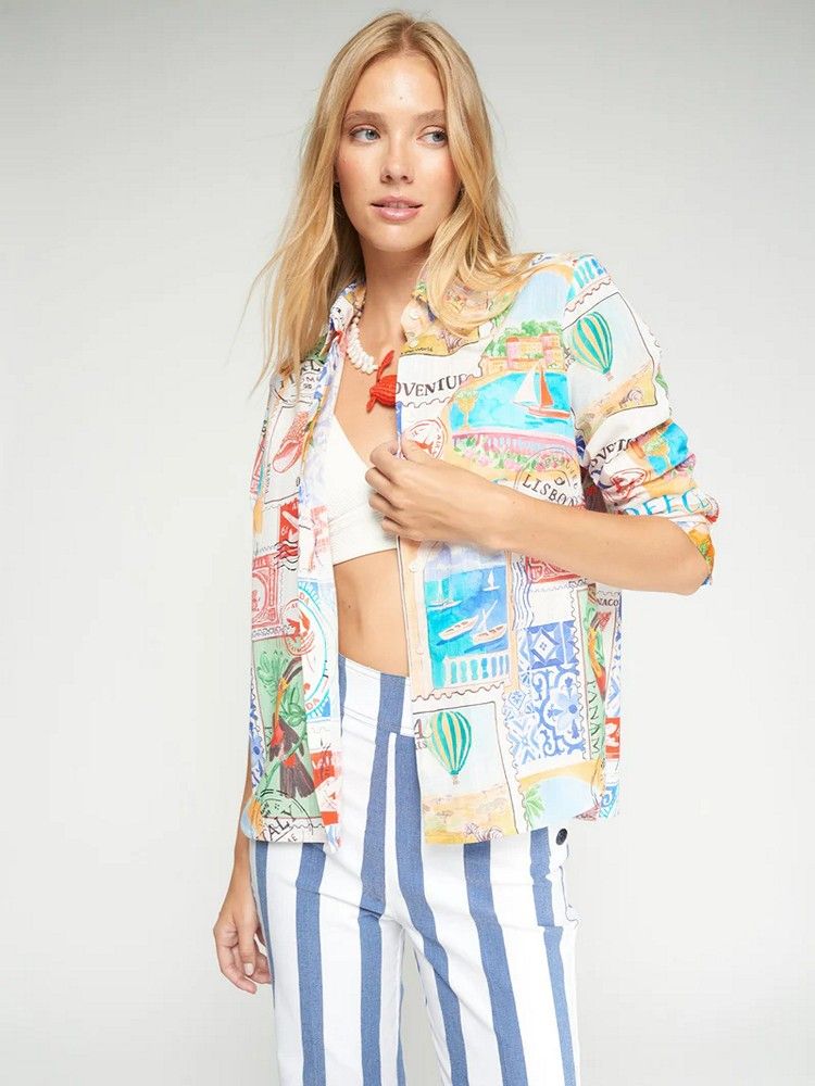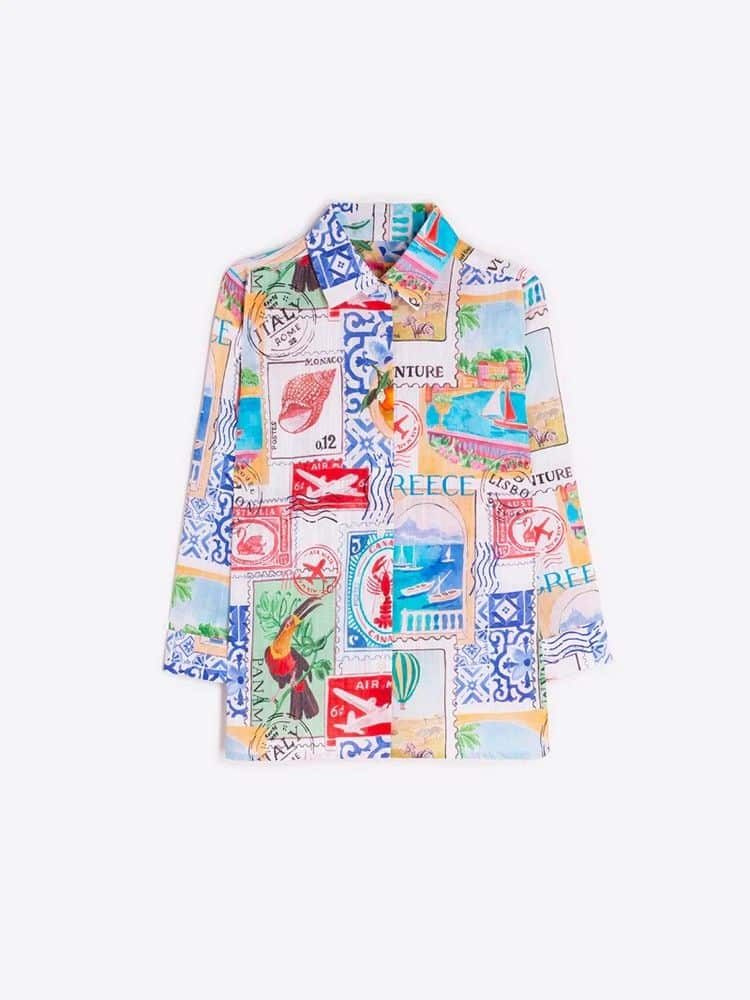Camisa mujer estampada sellos viajes Vilagallo.