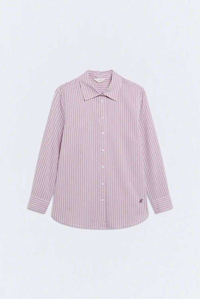 Camisa oversize de rayas rosas.