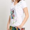 Camiseta mujer algodón estampada bolsos. Las camisetas son un fondo de armario dispuesto a vestirnos cualquier día del año. La clave está en adaptar el diseño, y el tejido a la estación del año. La camisa es una prenda que triunfa de día, de noche, en verano y en invierno. En nuestra nueva colección tenemos diferentes tendencias de camisetas para que llenes tu armario. Además de los colores básicos y atemporales como el blanco o el negro, puedes encontrar estampados florales y de diferentes motivos que darán un toque especial a tu estilo diario en esta temporada.