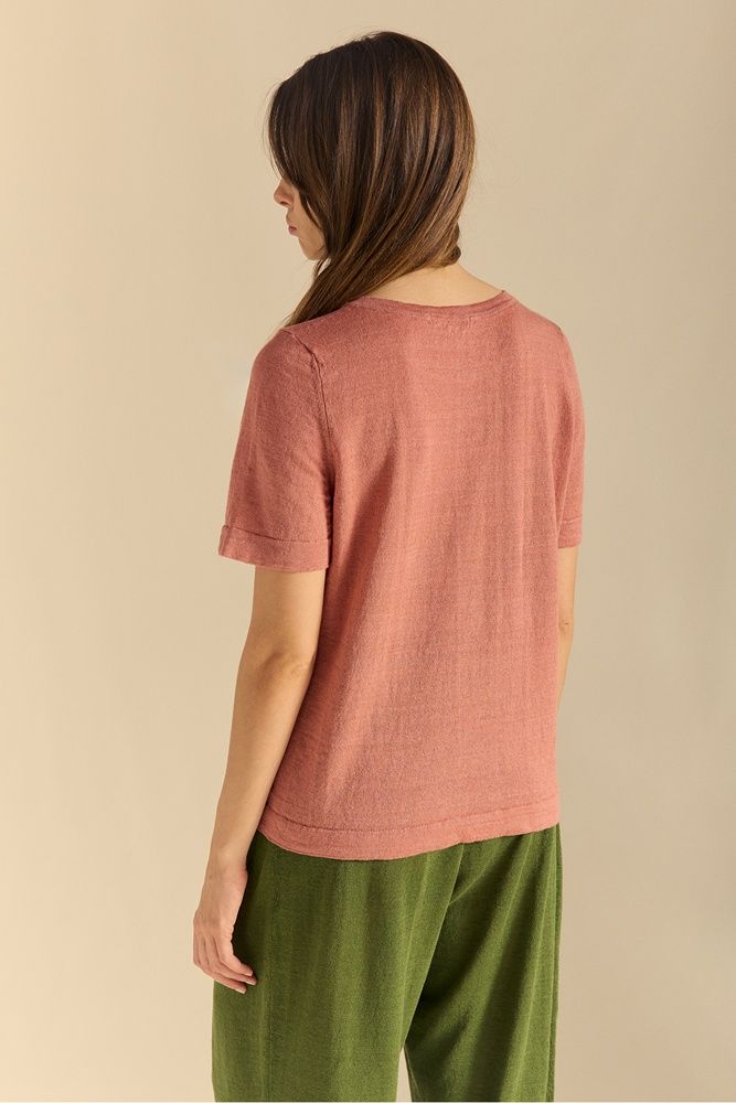 Camiseta mujer lino manga pegada.