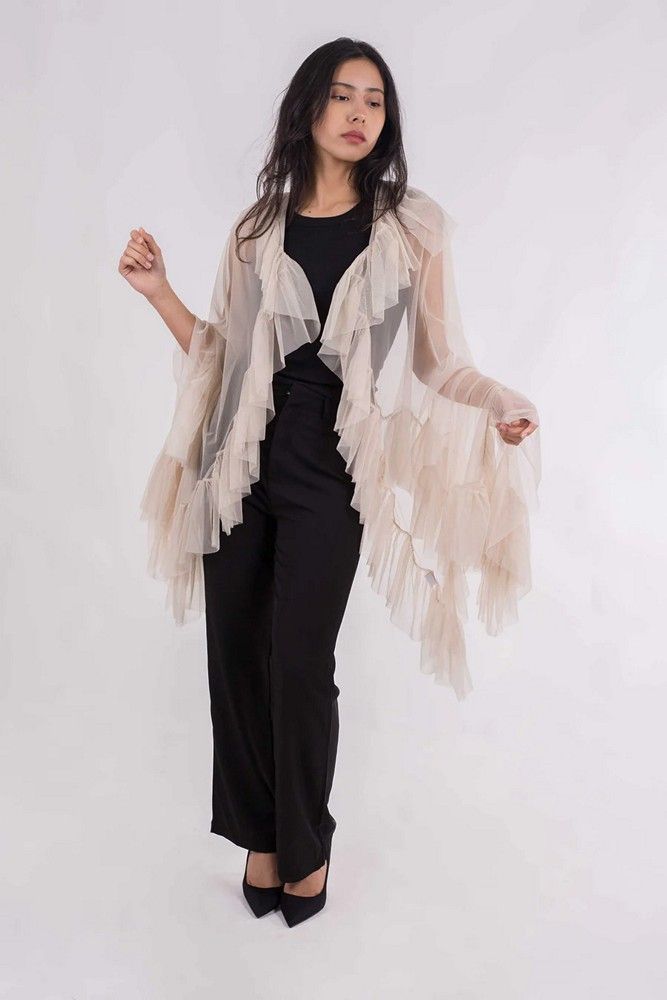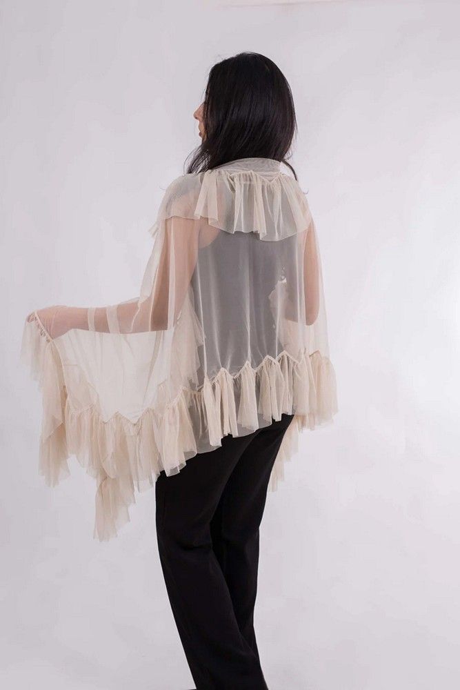 Chal mujer fiesta camisola. Experimenta el tacto lujoso y suave de nuestra chal camisola, perfecta para cualquier ocasión especial como bodas y fiestas. La delicada y cómoda tela de tul te hará sentir espectacular y lista para celebrar con estilo.