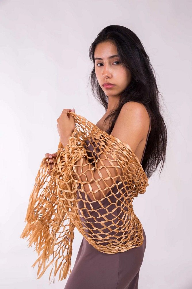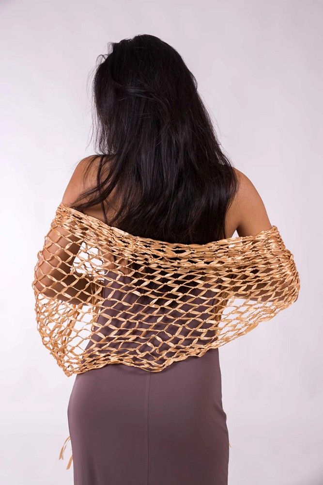 Este Chal Fiesta Cinta Fantasía es el complemento perfecto para cualquier fiesta o boda de primavera o verano. Confeccionado con cintas creando una elegante malla, este chal es muy original. Agrega un toque único y elegante a tu atuendo con este hermoso chal.