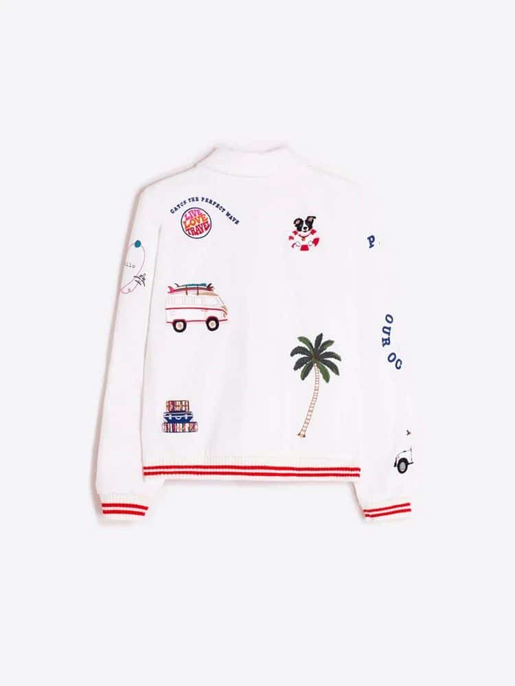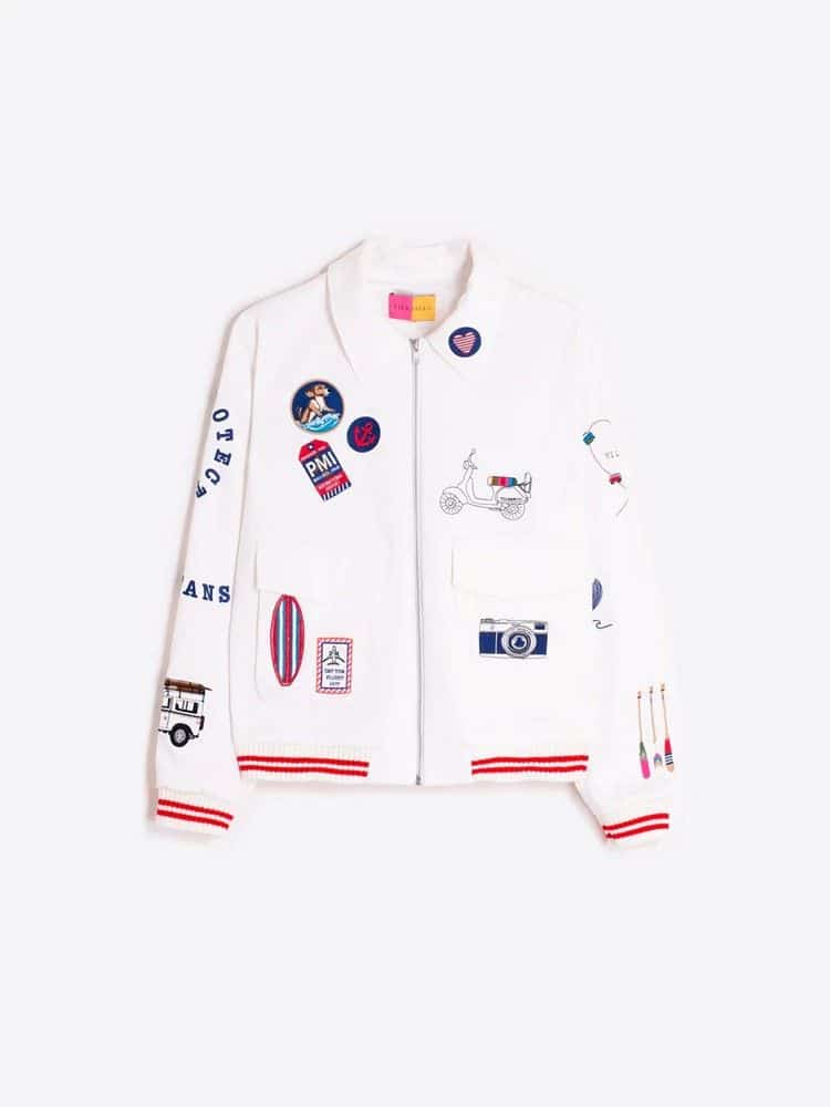 Chaqueta bomber mujer blanca bordado surf Vilagallo.