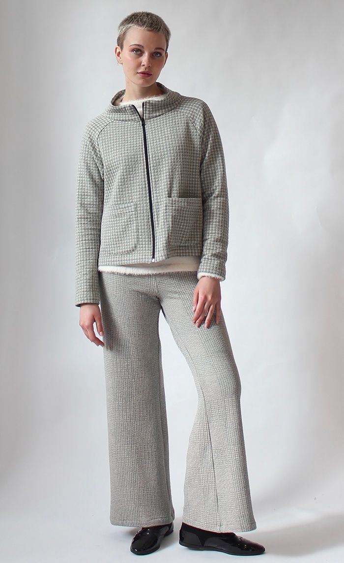 Chaqueta mujer corta con cremallera y bolsillos delante estampada Gales.