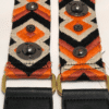 Cinta de bolso bordada en tonos negro, naranja y beige.