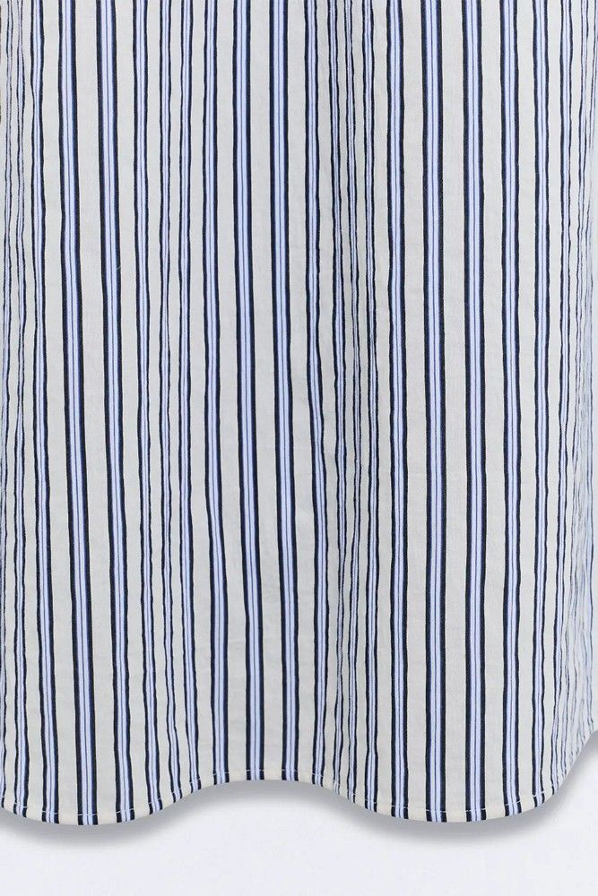 – En color blanco con rayas azul marino.