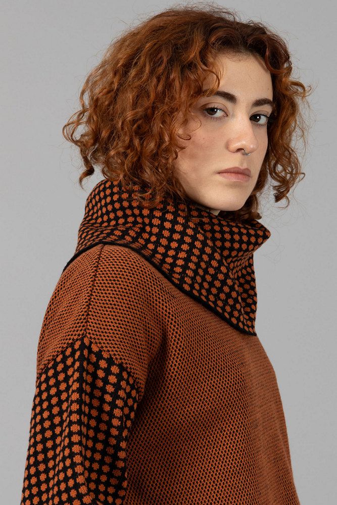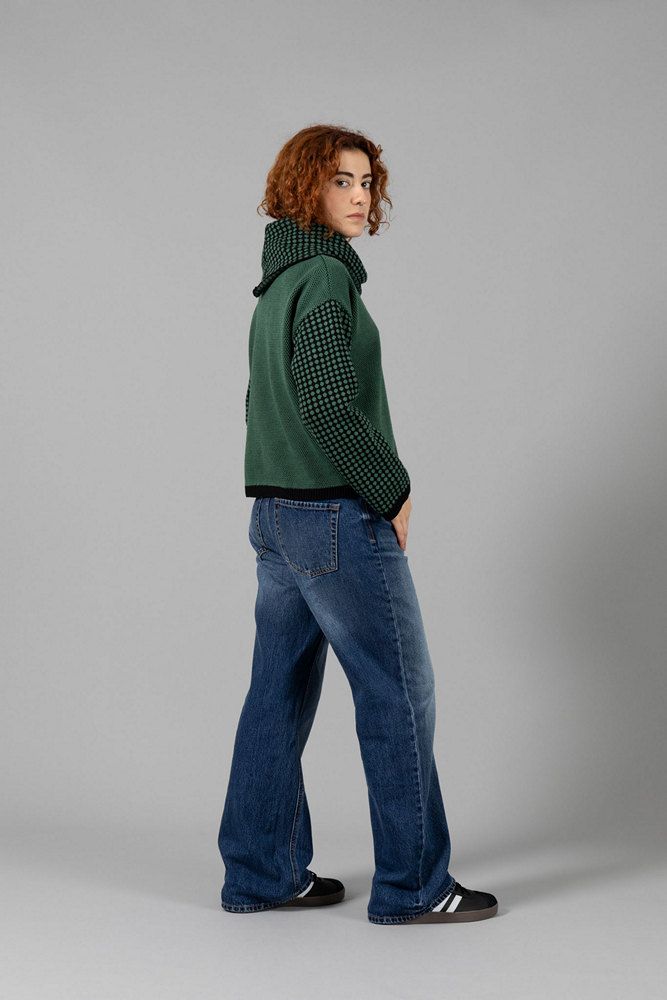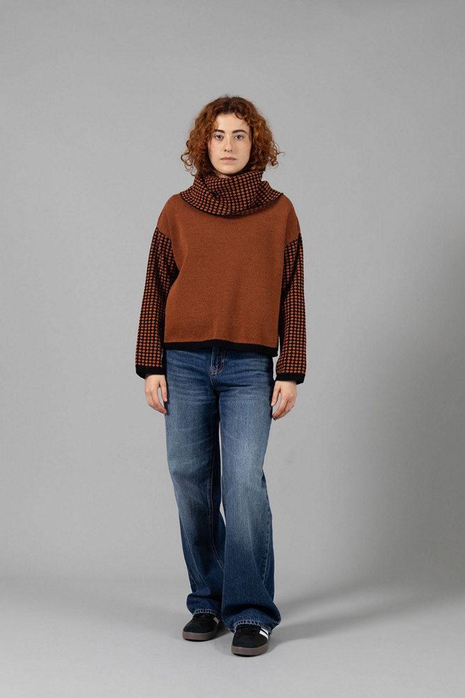 Jersey mujer combinado con estampado en el cuerpo y mangas jaspeadas.