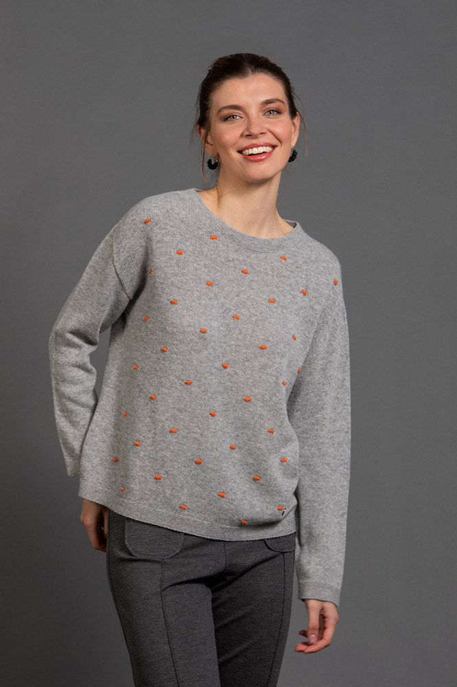 Hola! Qué tal ves Jersey mujer cuello redondo con bolas? Si tienes alguna duda, pregúntanos?