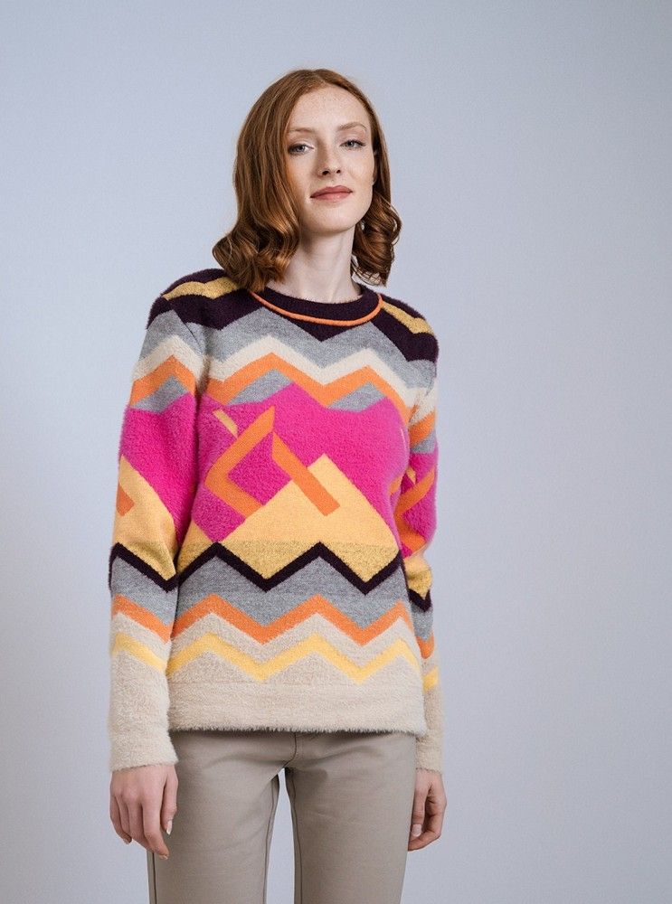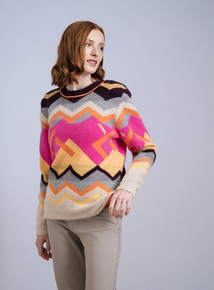 Jersey mujer cuello redondo pelux Zigzag