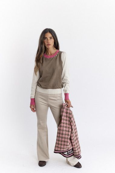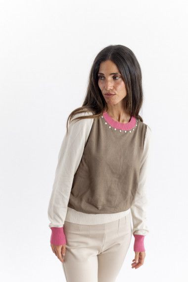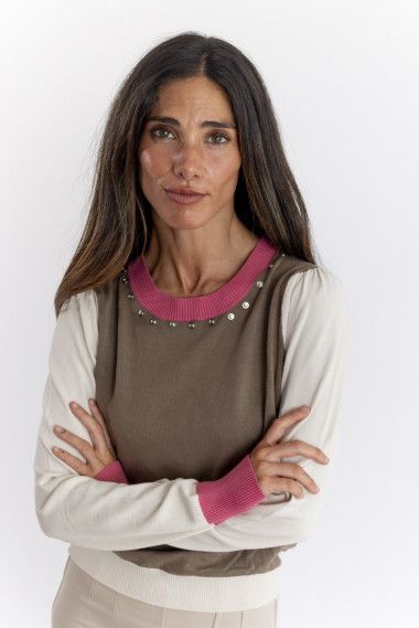 Jersey mujer punto cuello redondo con detalles metálicas.