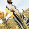 Kaftan mujer midi cuello pico estampado Lima.