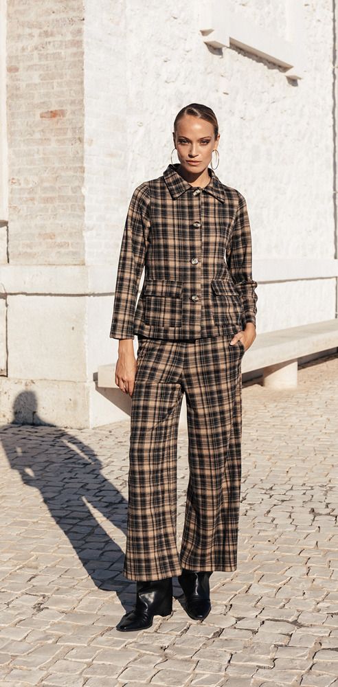Chaqueta mujer con strass espiga estampada cuadros Vilagallo