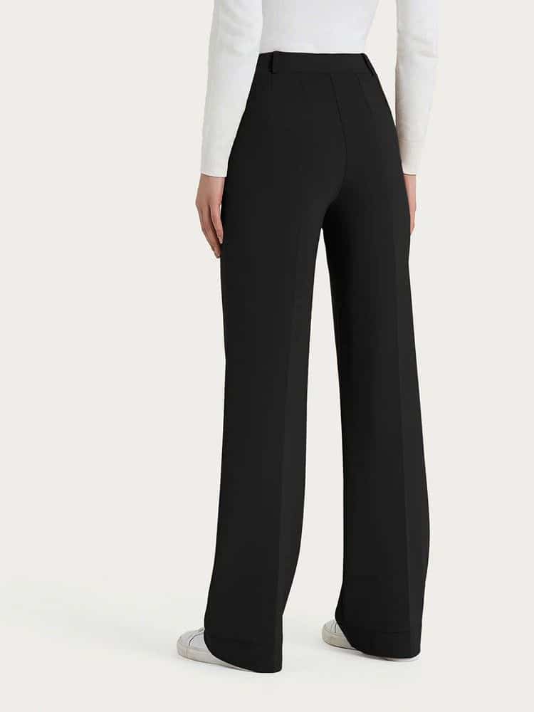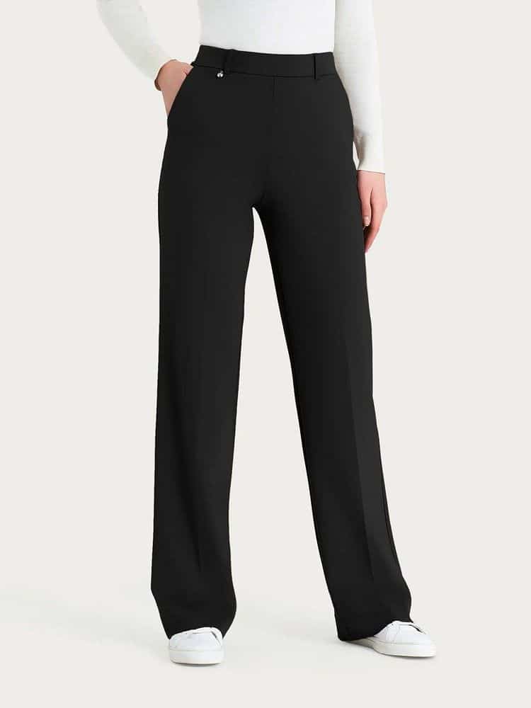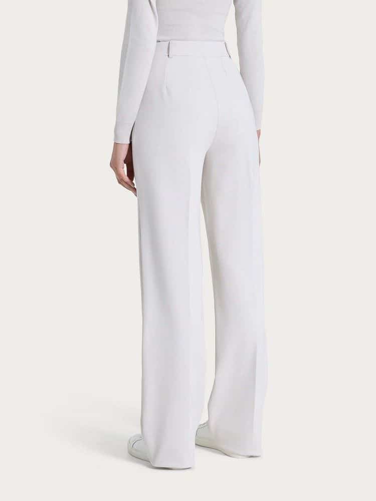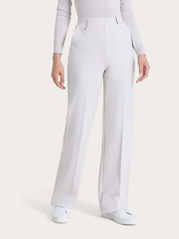 Pantalón mujer ancho con cintura elástica. Este modelo cuenta con una cintura elástica que garantiza comodidad y practicidad, enriquecida por trabillas para una mayor personalización del ajuste.