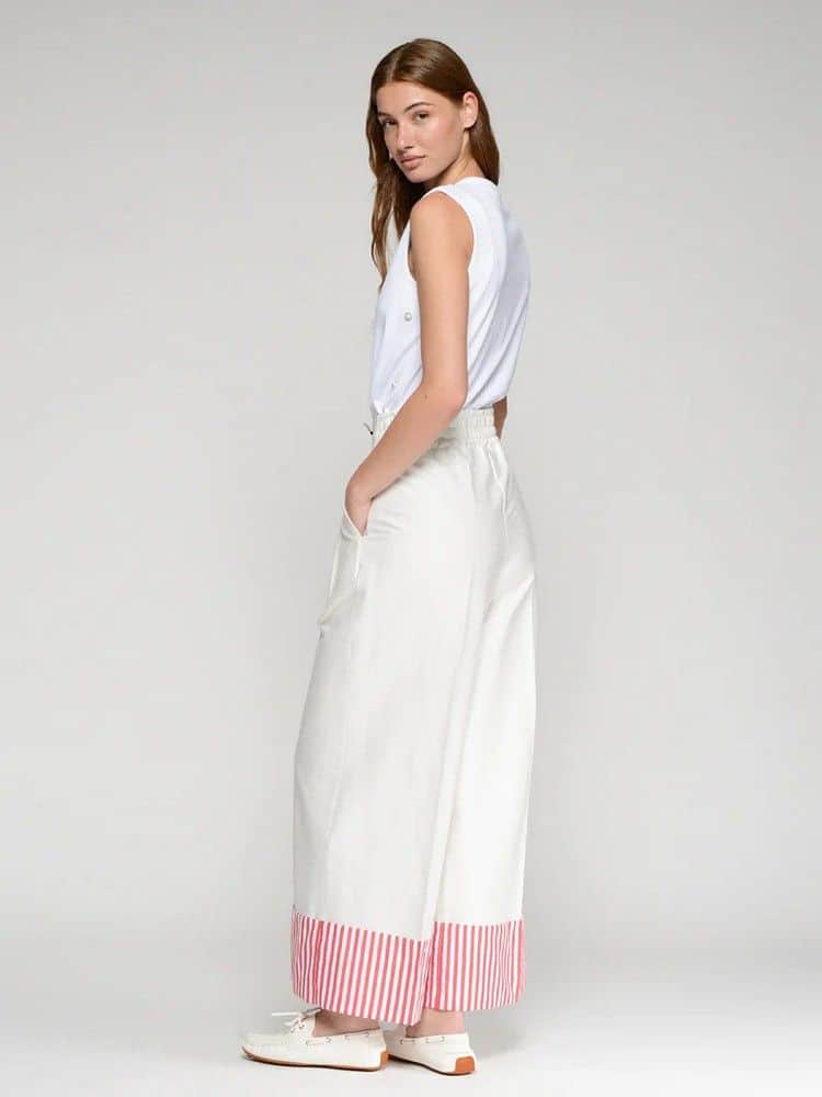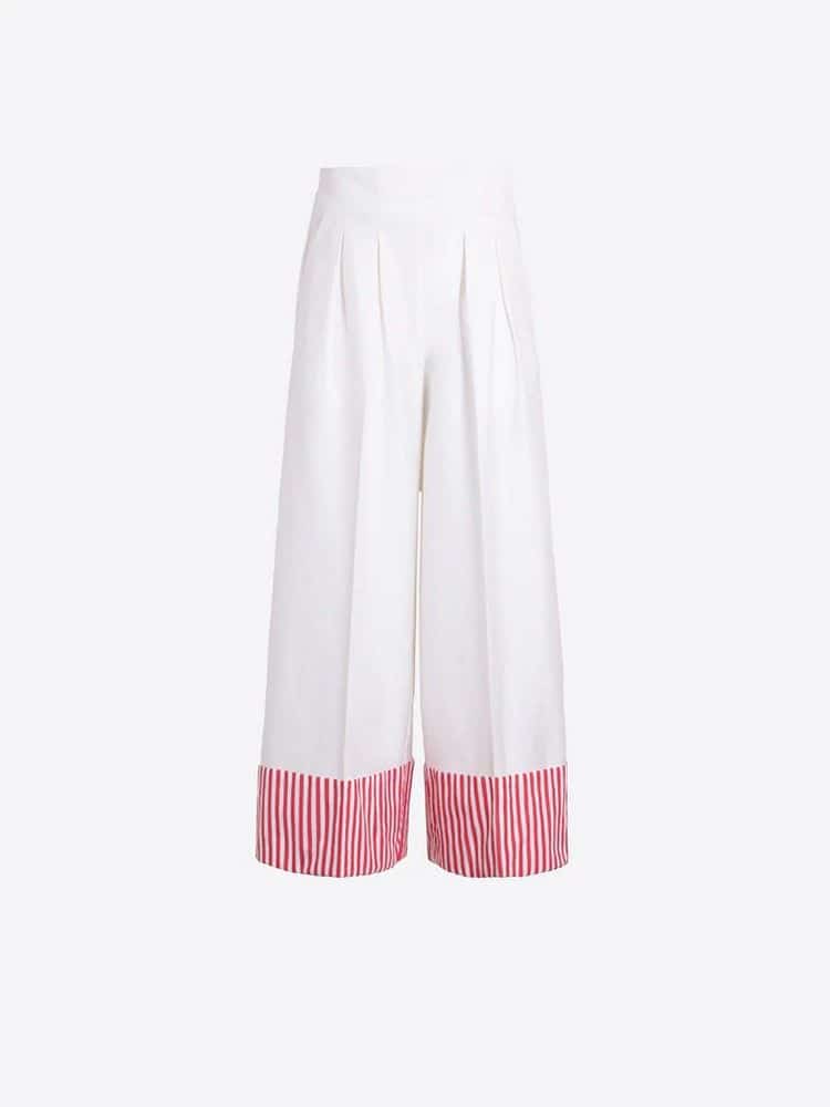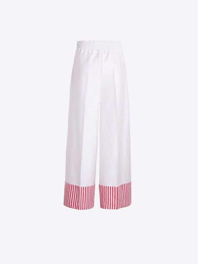 Pantalón mujer blanco con vuelta rayas rojas Vilagallo.