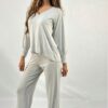 Pantalón recto con goma para mujer liso. En lopezientos también tenemos Suéter Mujer con cuello pico y manga larga para completar un traje