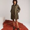 Parka acolchada de mujer con cuello camisero y bolsillos en pana fina a contraste, ligeramente en forma de A.