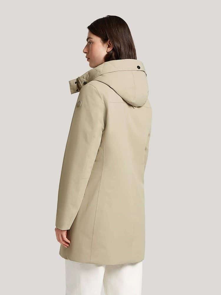 Plumas mujer largo capucha extraíble. Está diseñada para brindar comodidad y protección en condiciones climáticas adversas. Está confeccionada con un tejido de sarga impermeable, cortavientos y transpirable. Las costuras totalmente selladas ofrecen mayor protección contra la intemperie, mientras que la capucha desmontable y el cierre de doble cremallera aportan funcionalidad. Los prácticos bolsillos magnéticos y con cremallera mantienen tus pertenencias seguras.