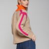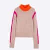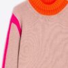Suéter mujer de punto con cuello alto. Cuello y detalles en las mangas a contraste en color rosa fucsia y naranja.