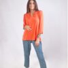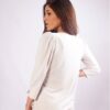 Top cuello pico con aberturas laterales y hombros abullonados.