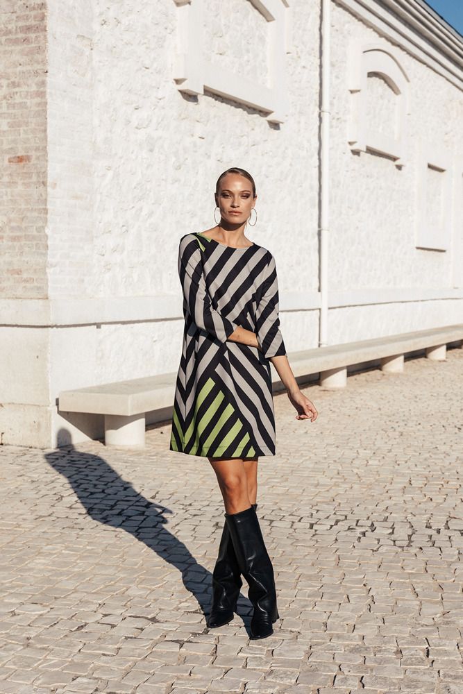 Vestido corto color nata liso, no puede faltar en tu armario, sienta muy bien y es fácil de combinar.