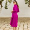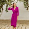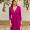 Vestido de fiesta efecto bata con lazada en la cintura de color buganvilla para lucir en tu evento estrella de este año. En Lopezientos tenemos varios estilos, colores y largos para que tengas opciones a elegir. Es importante para Lopezientos que te encuentres cómoda, es por esto que con este vestido lucirás un look que te enamorará.