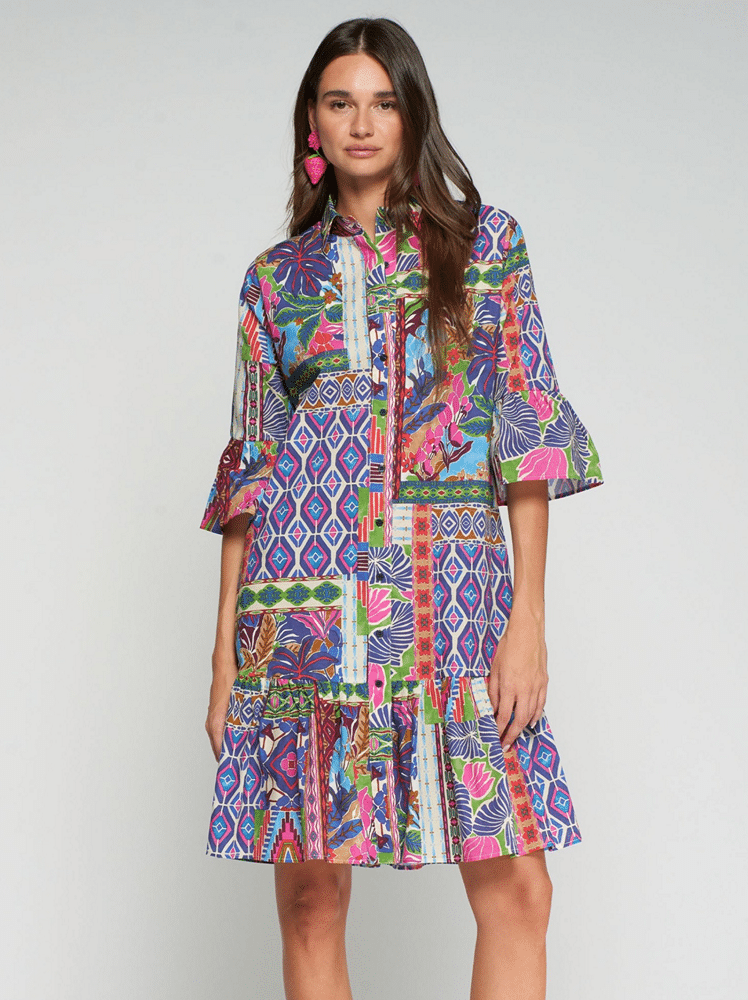 Vestido mujer camisero corto volante estampado Vilagallo.