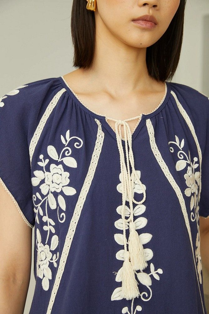 Vestido mujer corto bordado flores.