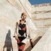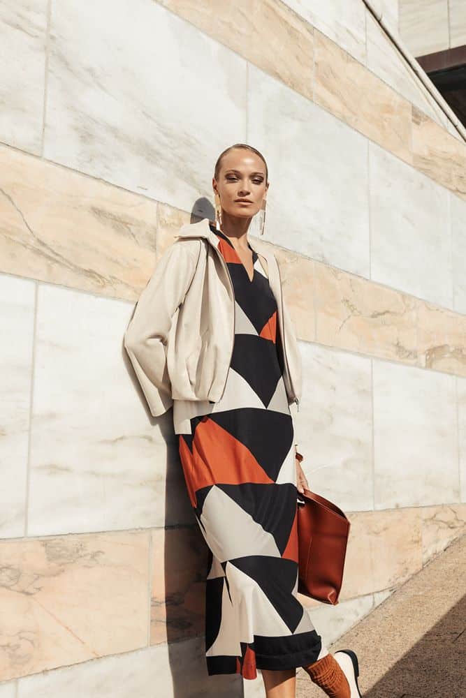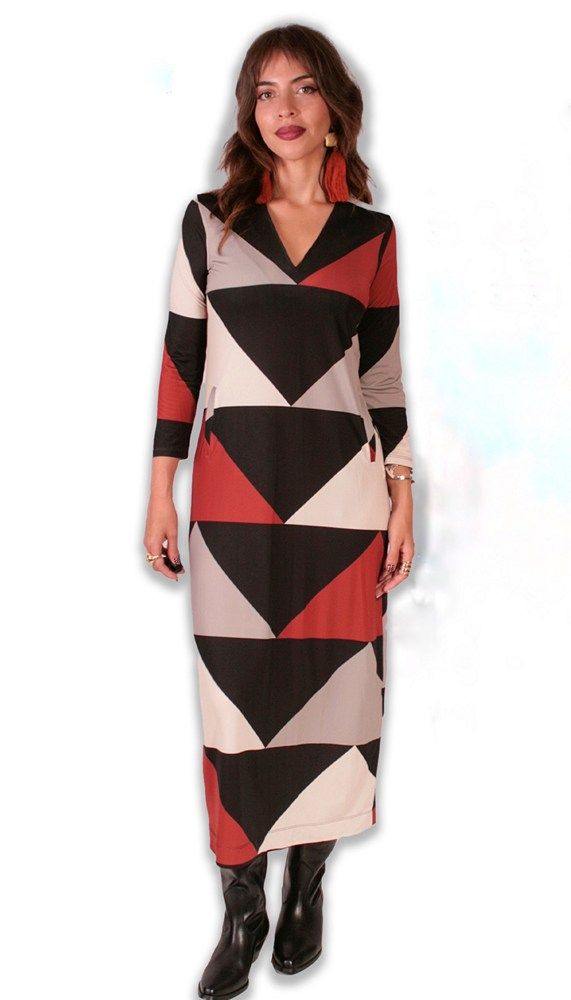 Vestido mujer cuello pico estampado Flecha Parole Italy.