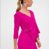 Vestido mujer de fiesta con escote pico y capa. Lleva forro.