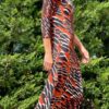 Vestido mujer largo cuello redondo y manga 3/4 estampado.