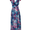 Vestido mujer largo de fiesta estampado con plumas de satén.