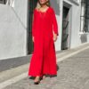 Vestido Mujer Largo escote barco y bolsillos en el delantero.
