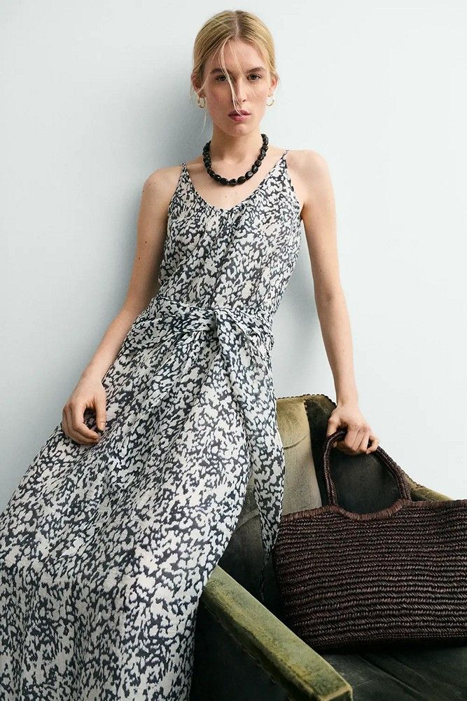 El vestido Zanzíbar se convierte en una pieza sofisticada y femenina, ideal para combinar con sandalias o zapatos planos y crear looks modernos y atrevidos con un toque de estilo animal print.