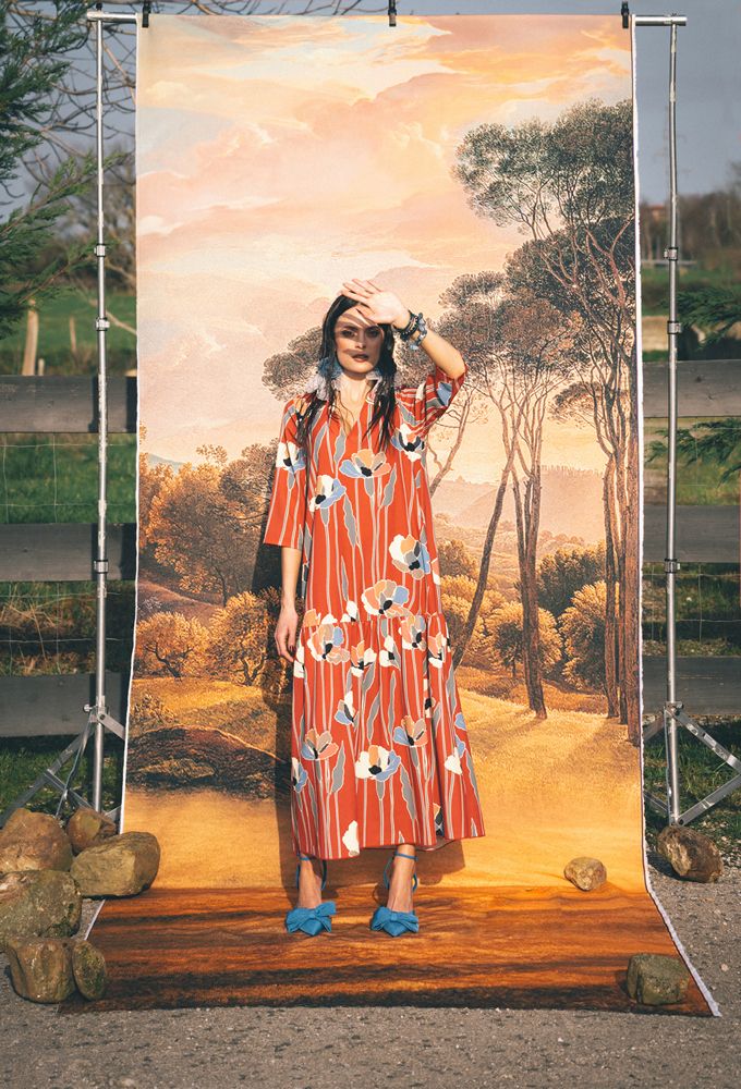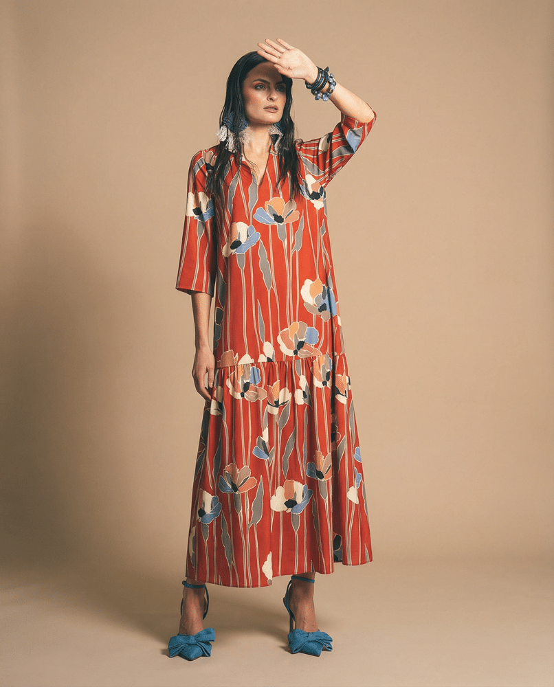 Vestido mujer largo volante Amapola Parole Italy.