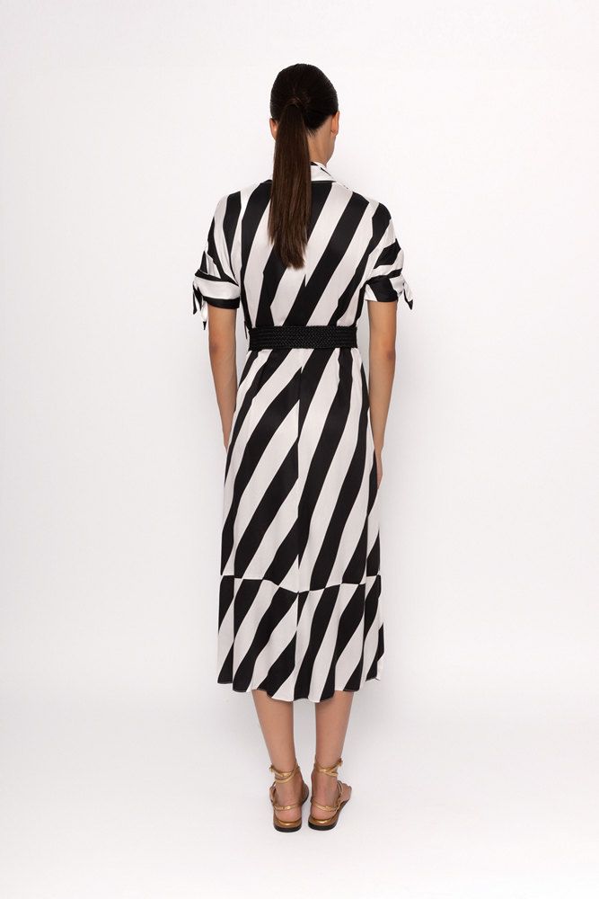 Vestido mujer midi camisero con cinturón y lazos en las mangas.