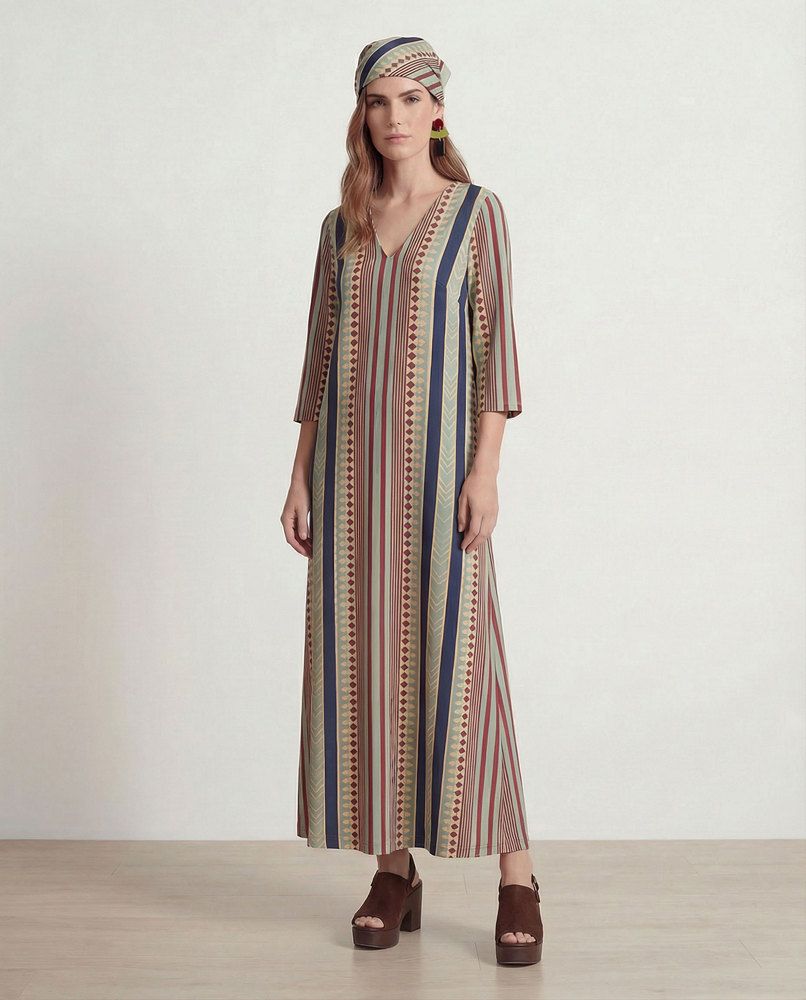 Vestido mujer midi con cuello alto estampado Parole Italy.