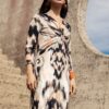Vestido mujer midi con nudo estampado Esmeralda Parole Italy.