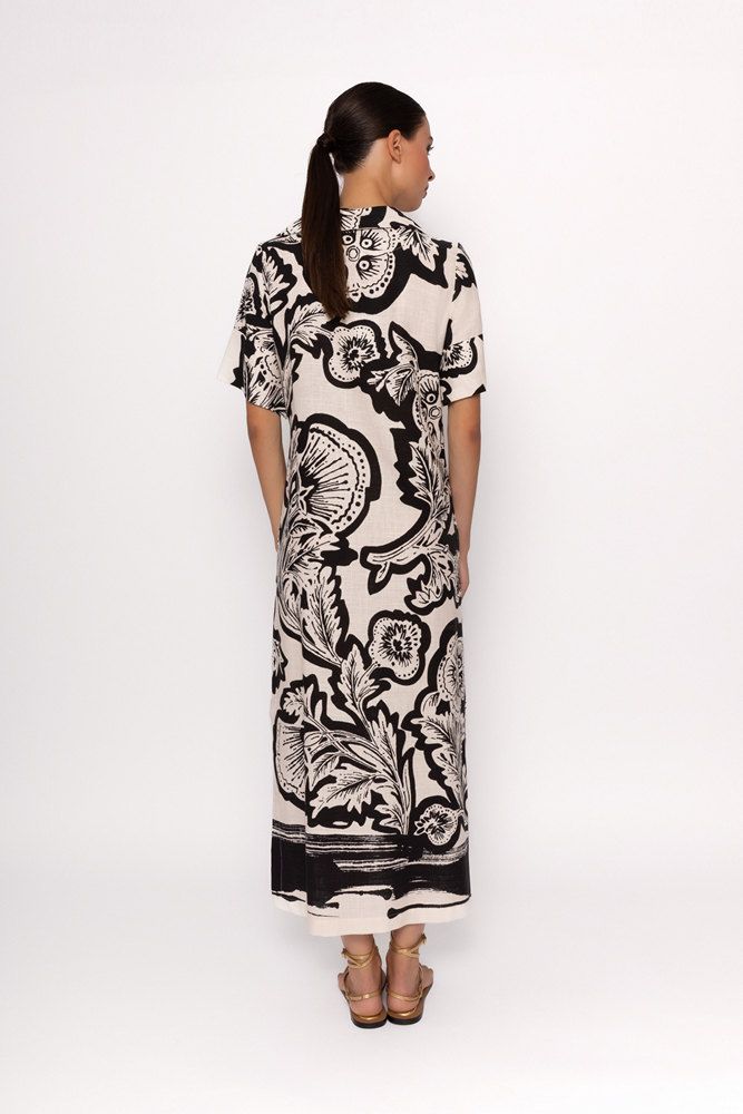Vestido mujer midi cuello polo con aberturas.