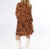 Vestido de mujer en forma de A con cuello caja y manga larga de la firma Parole Italy con estampado de fuegos artificiales disponible en dos colores.