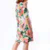 Vestidos cortos estampados mujer Parole Italy con cuello redondo con abertura, estampado de papayas y manga 3/4.