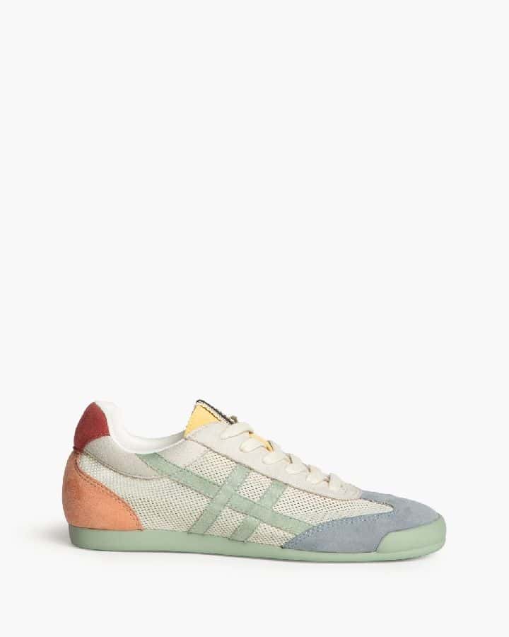 Zapatilla mujer deportiva estilo retro en combinación de materiales. Cierre mediante cordones de siete pasadas.